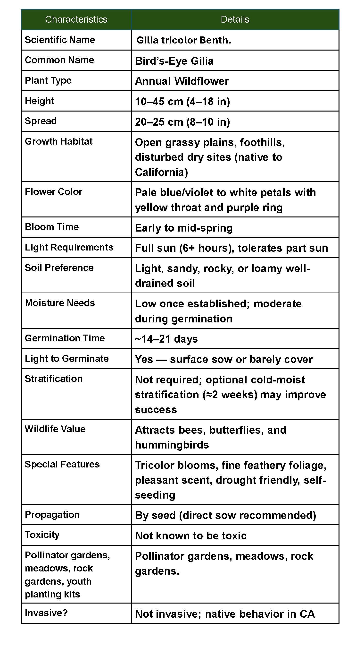 Bird's Eyes (Gilia tricolor) - Native California Wildflower Seeds