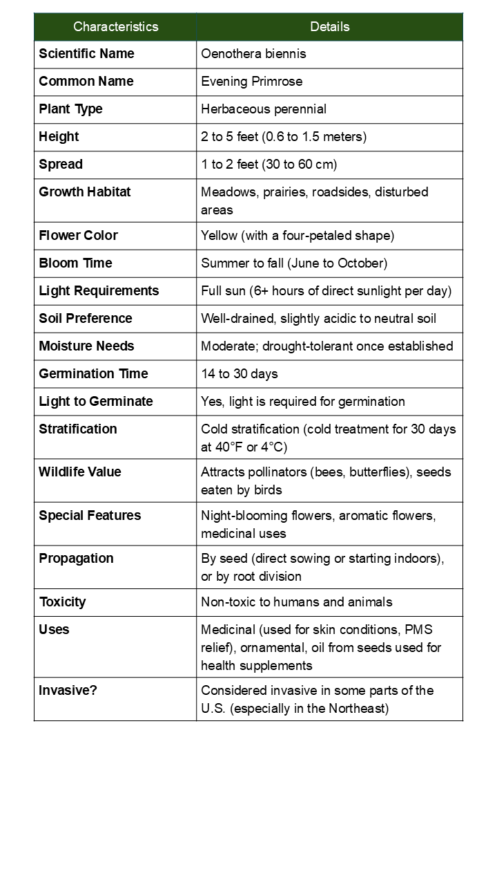 Evening Primrose Seeds - Native Biennial Wildflower (Oenothera biennis)