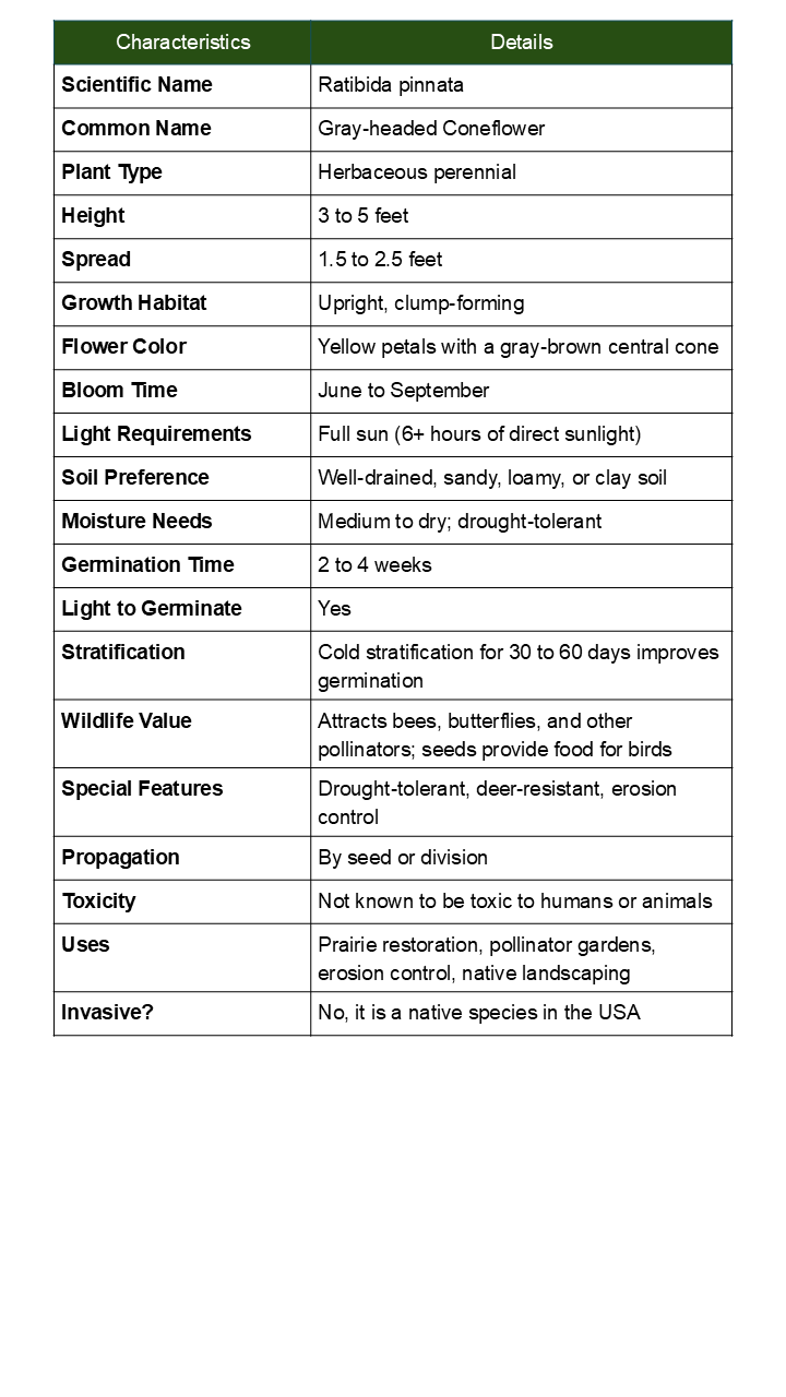 Grey Headed Coneflower Seeds - Premium Ratibida pinnata for Prairie Wildflower Gardens