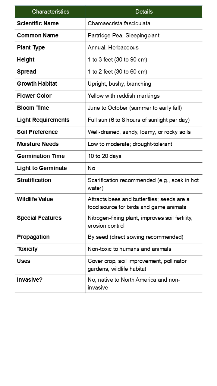 Partridge Pea Seeds - Native Annual Wildflower (Chamaecrista fasciculata) for Pollinator Gardens