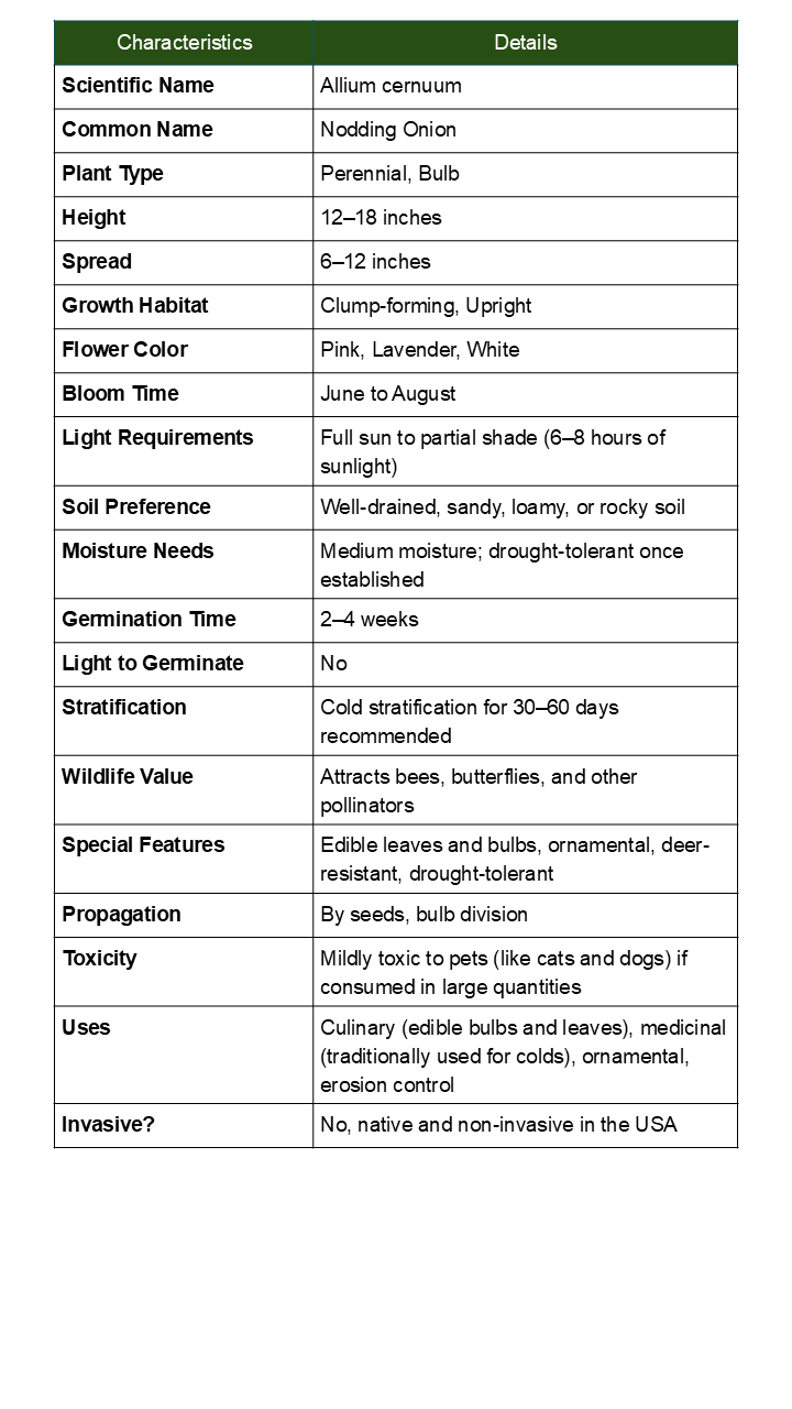 Nodding Pink Onion Seeds - Native Wildflower (Allium cernuum) for Prairie Gardens