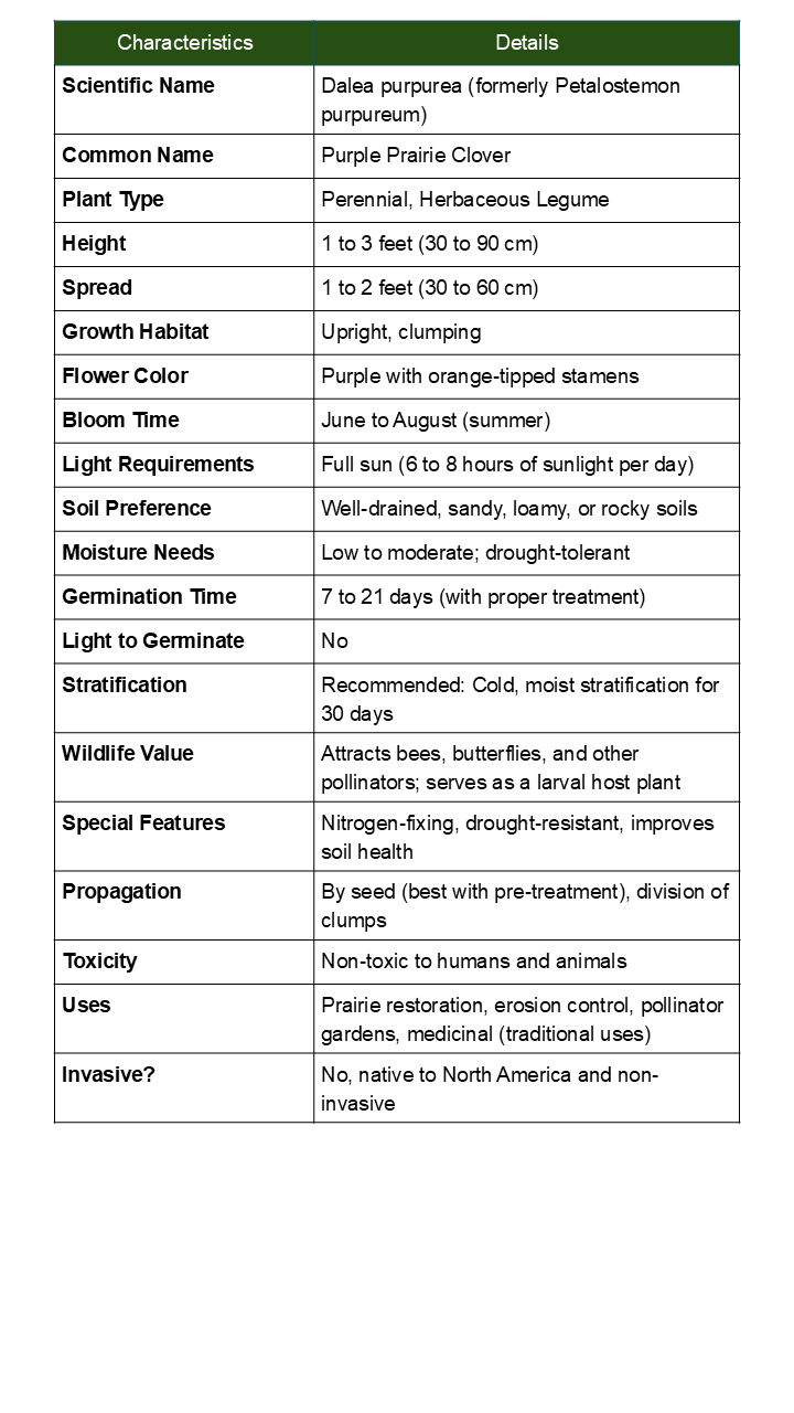 Purple Prairie Clover Seeds - Native Wildflower (Dalea purpurea) for Pollinator Gardens