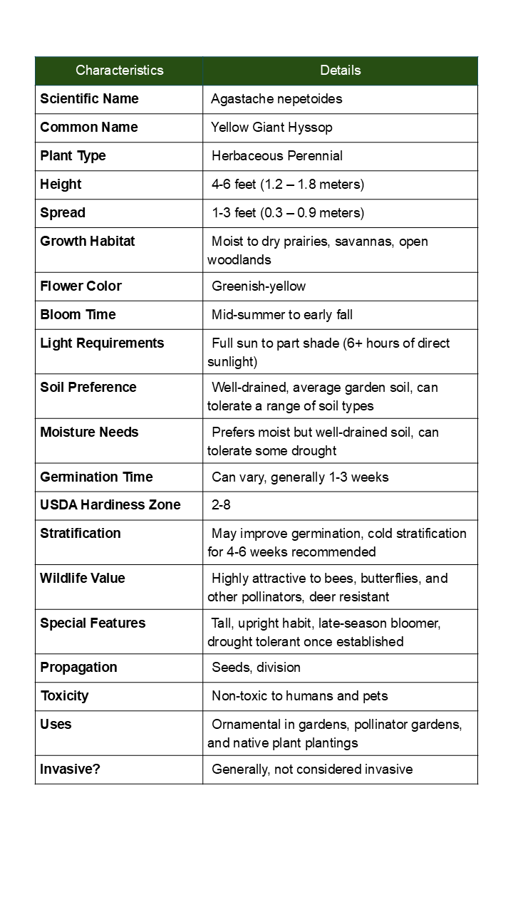 Yellow Giant Hyssop Seeds - Native Agastache Nepetoides | Tall Fragrant Pollinator Plant