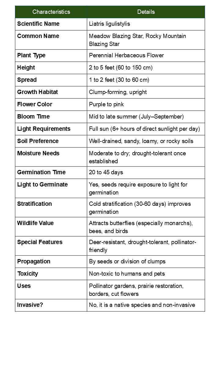 Meadow Blazing Star Seeds - Premium Liatris ligulistylis for Prairie Butterfly Gardens