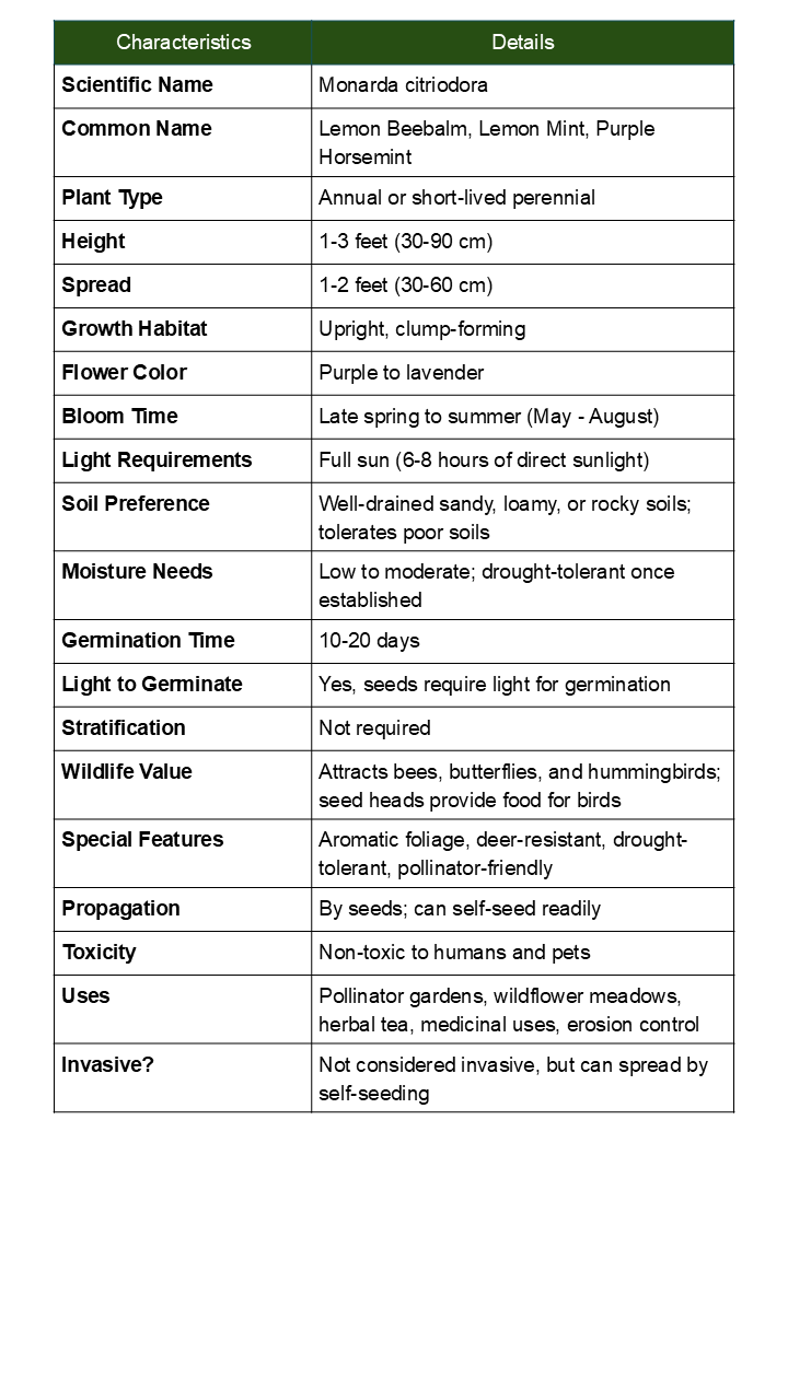 Lemon Mint Seeds - Premium Monarda citriodora for Aromatic Herb Gardens