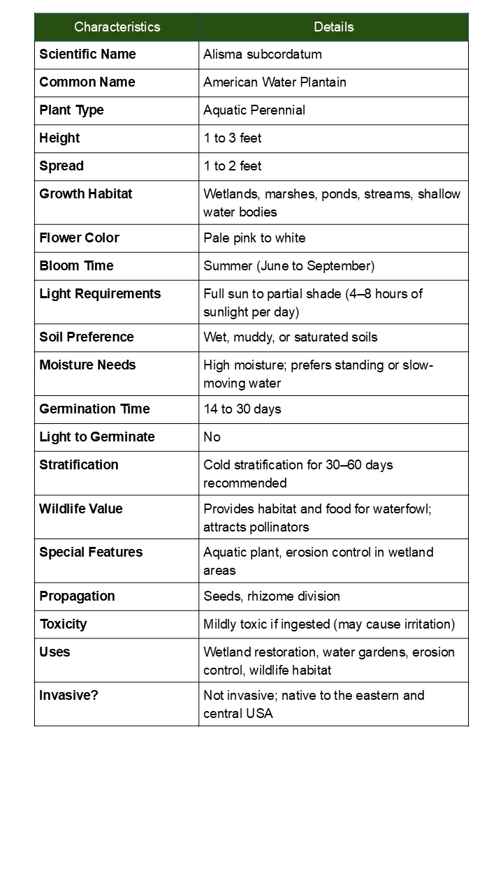 pH: American Water-plantain prefers a neutral to slightly alkaline soil pH.