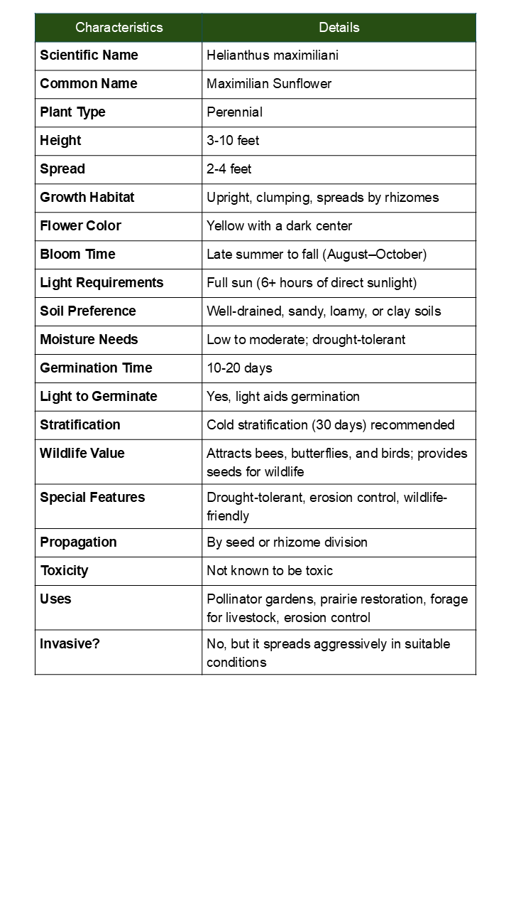 Maximilian Sunflower Seeds - Native Helianthus Maximiliani | Tall Prairie Wildflower