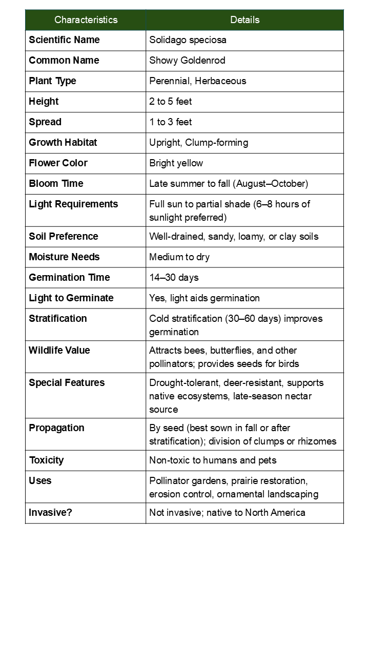 Showy Goldenrod Seeds - Native Solidago Speciosa | Golden Fall Monarch Magnet